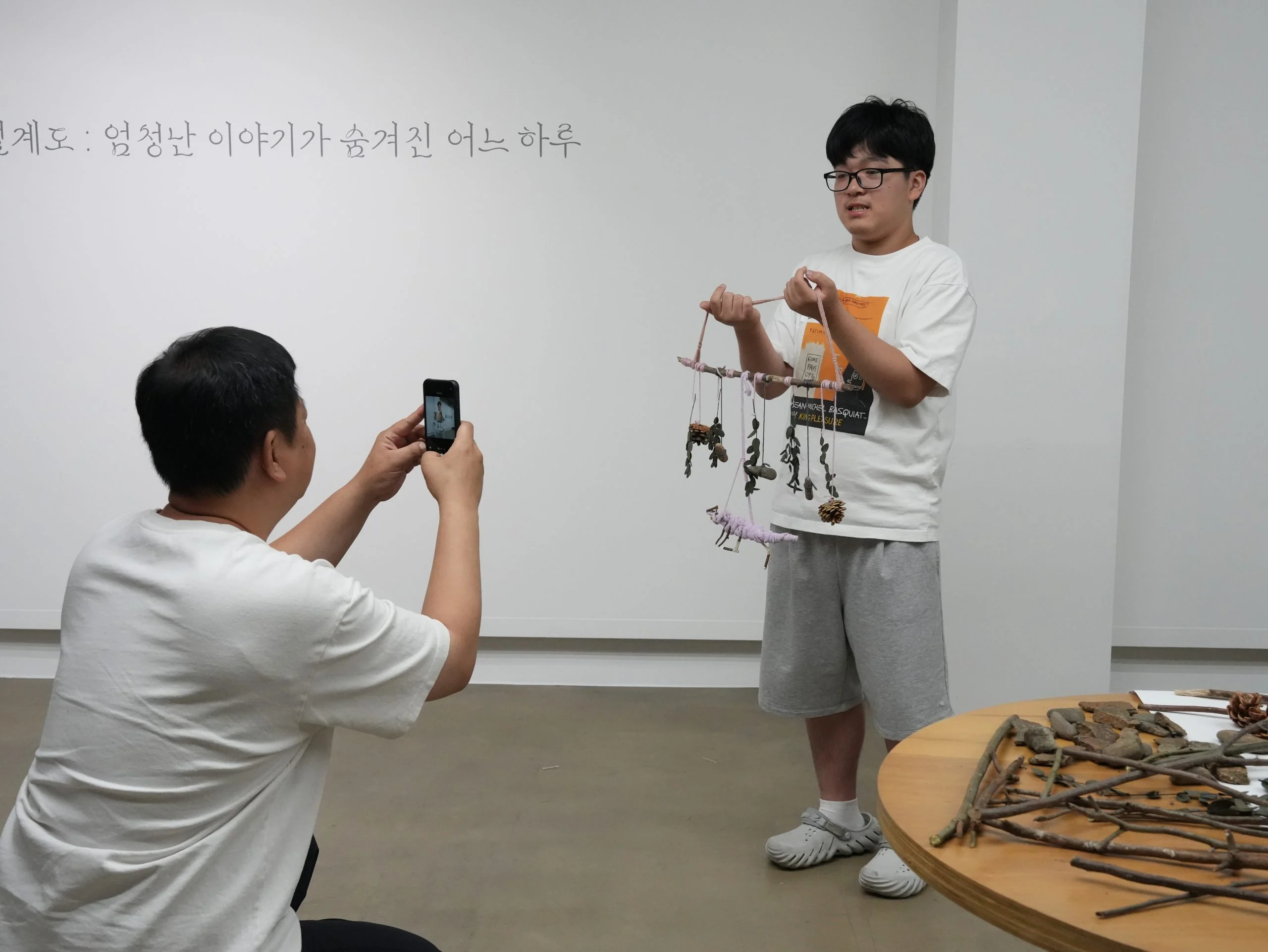 본 워크숍은 발달장애 가정을 위한 워크숍 입니다. 주변의 자연물을 채집해 각 계절마다 자연이 우리에게 주는 선물을 만납니다. 채집해 온 자연물을 털실과 채색으로 알록달록 꾸민 뒤 모빌을 제작합니다. 오늘의 계절은 어떤 모양인가요?
