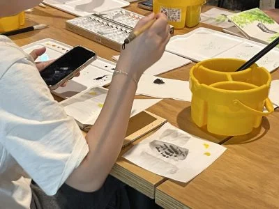 동양화의 다양한 필법에 대한 설명을 듣고 나만의 필법에 대해 실험해 봅니다. 스케치 없이 붓으로 워크숍 공간을 그려보고, 익숙하지 않은 반대 손으로 다시 한번 그려봅니다. 일상을 되돌아보며 나에게 소중하거나 영감을 주는 장소나 사물에 대해 그려보며, 패턴으로 만들고 그립니다.