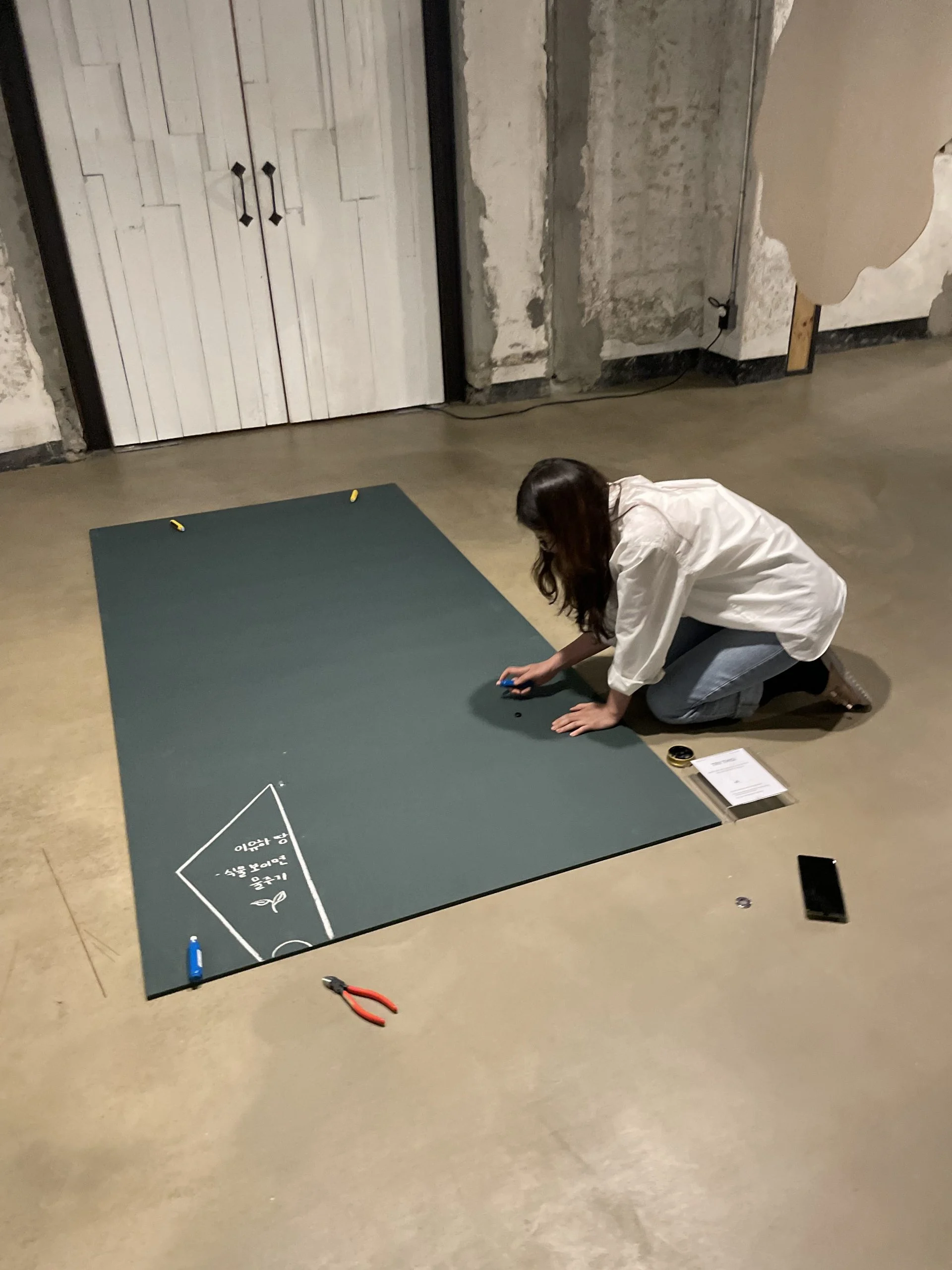 2022 지역기반프로젝트《여기는 우리 땅이야》는 물리적 개념으로서의 땅(지역)이 삶의 반경 안에서 나(우리)와 어떤 관계를 구축하는지 관찰합니다.  <땅따먹기>는 땅따먹기 놀이의 결과로 얻게 되는 기이한 모양의 결과물을 우리에게 보여줍니다. 내 땅임을 선포하고, 내 땅이 되도록 하는 전략을 통해  나(우리)는 각자의 영토를 획득하게 됩니다. 나(우리)의 땅에 이름을 명명하고 규칙을 적게 되면, 한 뼘 만큼의 나(우리)의 땅을 획득하는 전시가 될 것입니다.