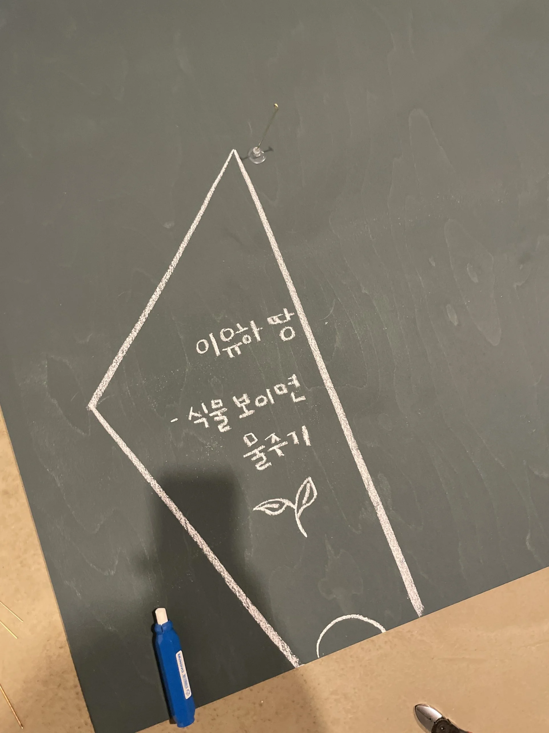 ➀  지면에 원 또는 네모를 1~2cm 크기로 그려놓아 경계를 정한다.