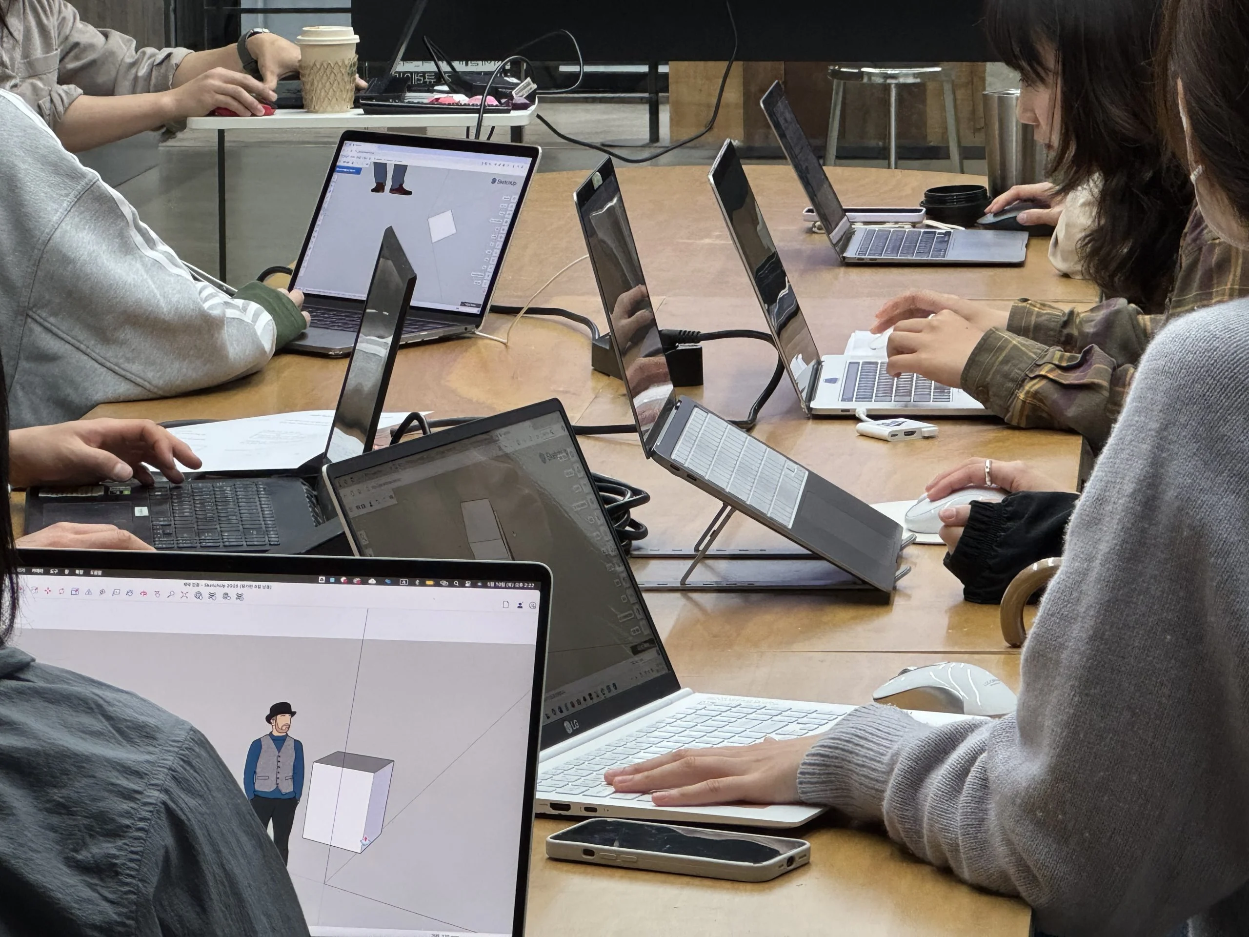 전시공간 제안서, 전시설치를 위한 스케치업 사용 방법과 전시공간 만들기 실습을 위한 블렌더, 생성형 ai를 활용한 작품 예상도 제작을 진행합니다.
