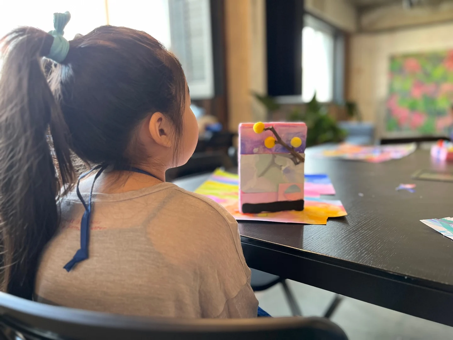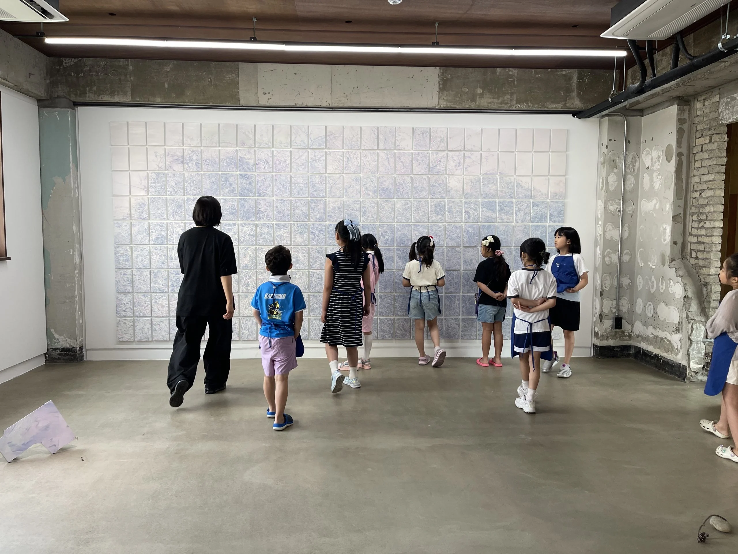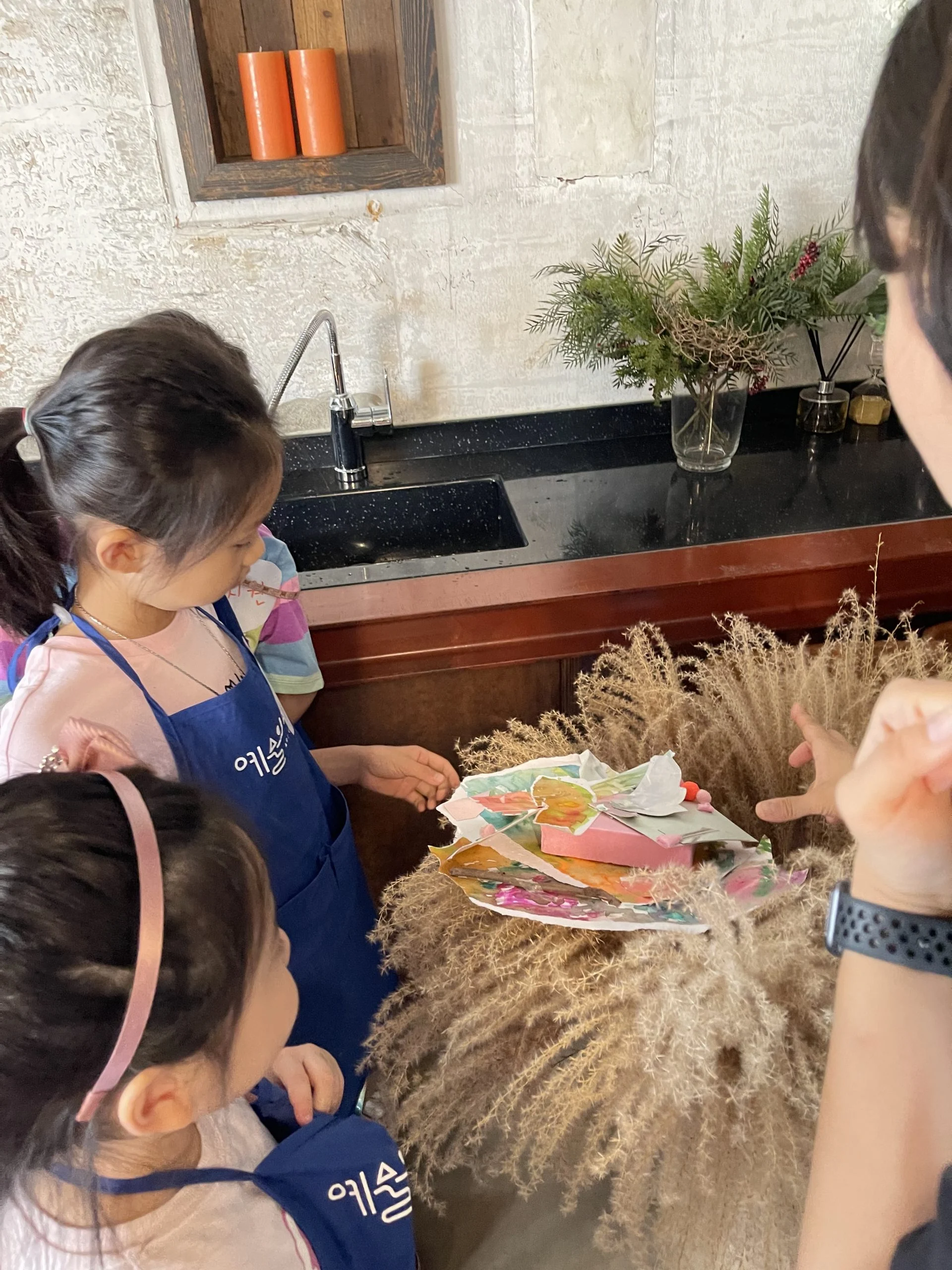 우리 함께 작가의 작품 주제를 바탕으로, 작업의 부산물과 참여 어린이가 직접 만드는 색 종이를 활용하여, 쓸모와 목적과는 다른 가치에 대해 이야기하고 작은 모양을 만들어 봅니다. 수업 과정 중 전시를 함께 감상하는 시간도 있습니다.
