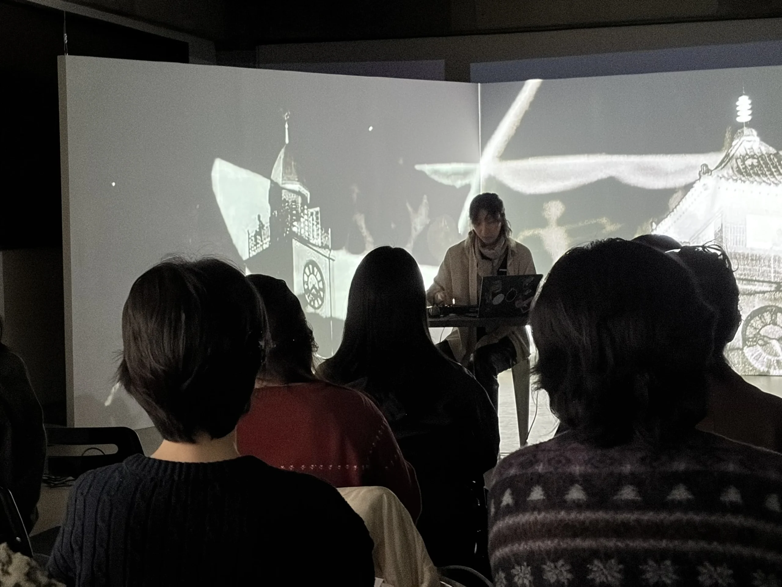 영상 작품 <국제주의자의 열쇠>의 과정을 관객과 공유하기 위해 소소한 자리를 마련하였습니다. 작가 이희경은 영상의 주인공 A의 시선을 상상하며 답사 과정에서 쓴 에세이를 낭독하고, 음악을 맡은 문지호는 영상 음악의 층을 이루는 소리를 다시 한번 갈무리하여 들려주고자 합니다. 공연과 낭독이 끝난 후에는 김강리 기획자와 함께 작품을 구성하는 여러 사회적 층위에 대해 관객과 담소를 나누고자 합니다.