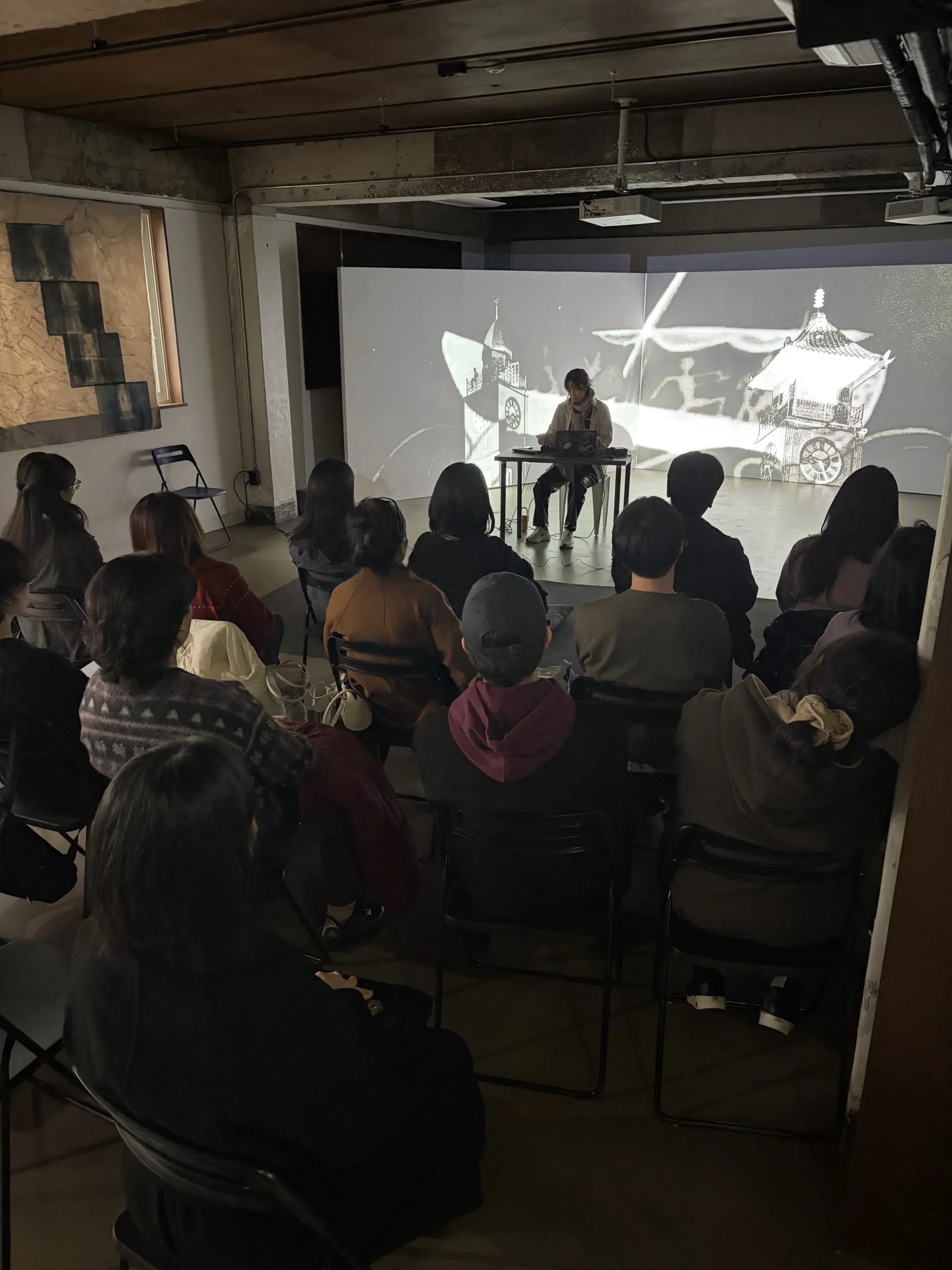 아트센터예술의시간은 이희경 작가의 전시 《Desir Angin 바람의 속삭임》과 연계하여 프로그램 <응축과 균열 : 전시 연계 공연과 낭독 그리고 작가와의 대화>를 진행한다. 본 프로그램은 영상 작품 <국제주의자의 열쇠>의 제작 과정을 관객과 공유하기 위해 마련한 자리이다. 작가 이희경은 영상의 주인공 A의 시선을 상상하며 답사 과정에서 작성한 에세이를 낭독하고, 음악을 맡은 문지호는 영상 음악을 구성하는 소리의 층위를 다시 갈무리하여 들려준다. 공연과 낭독이 끝난 후에는 김강리 기획자와 함께 작품을 이루는 다양한 사회적 층위에 대해 관객과 대화를 나누는 시간을 가진다.
