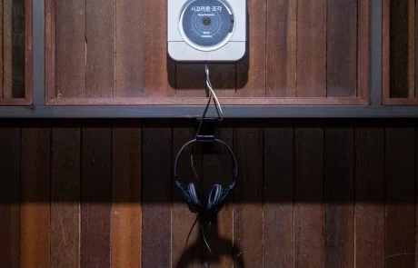 박관우의 <스푸닝>은 당신을 의식하지 않습니다. 포개어 놓여진 두 개의 헤드폰에 눈길을 빼앗기는 쪽은 당신입니다. 어스름한 새벽을 떠올리게 하는 묘한 공간 안에 겹쳐진 헤드폰은 다른 음악을 출력하고 있습니다. 간혹 이 둘은 동시에 침묵하기도 하고, 한쪽만 소리를 내기도하며, 다른 음악을 동시에 플레이하는 방식으로 소통합니다. 헤드폰이 갖는 은밀하고 배타적인 특성이 오히려 당신만 알고 있을지 모르는 엇갈리고 겹쳐진 상황을 증폭시킵니다.