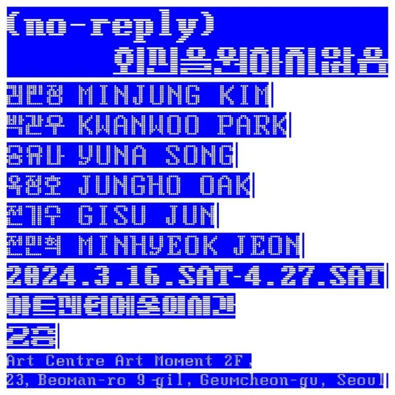편협한 내면의 공간이 세계와 연결되는 일, 그것은 타인을 맞아들임에서 시작된다. 이를 위해 전시 <(no-reply) 회신을 원하지 않음>은 ‘당신’을‘우리의 대화’ 안으로 초대하는 일부터 시작하고자 한다.