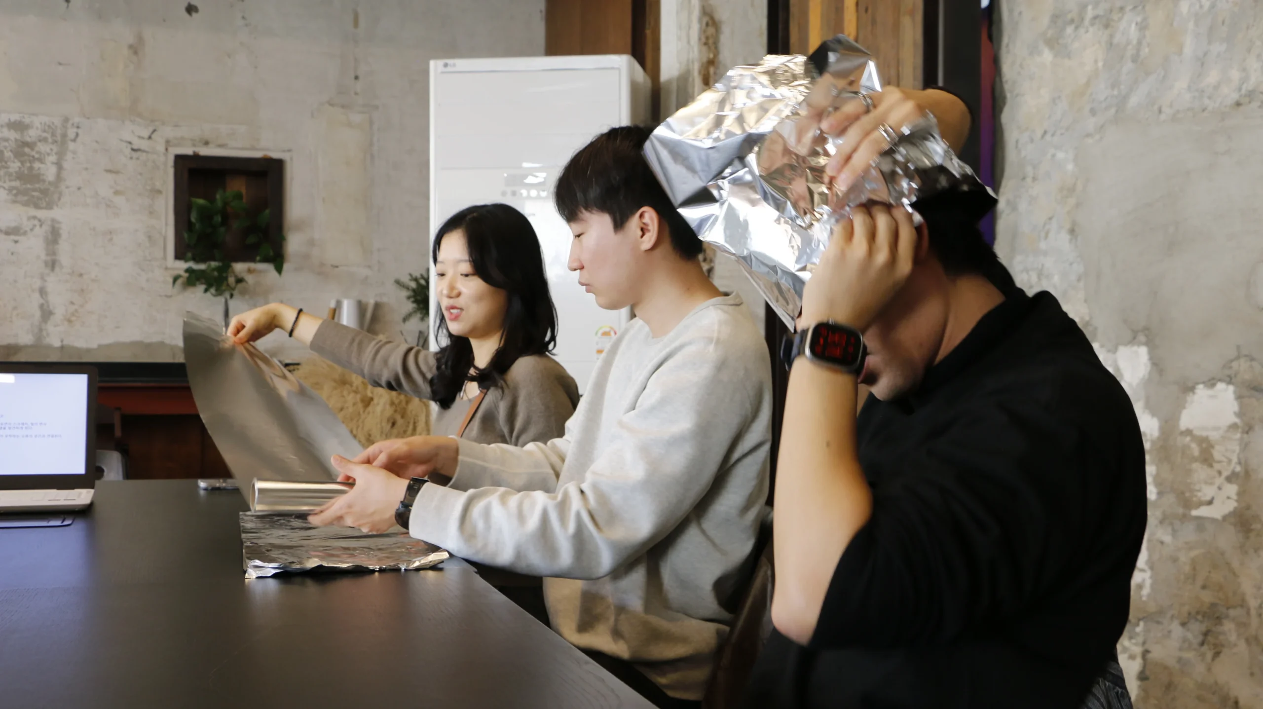 본 프로그램은 이러한 개념을 바탕으로 ‘평평한 세계를 감지하는 장치’를 만들고, 공간 속 작은 오류들을 관찰하는 실험을 진행한다. 참여자는 알루미늄 호일을 이용한 틴 포일 햇(Tin Foil Hat)을 제작하고 착용하며, 익숙한 공간을 새로운 감각으로 관찰한다. 이 과정에서 참여자는 완전해 보이는 세계 속에서 발견되는 미세한 균열과 오류를 감각적으로 경험하게 된다. 참여자는 익숙한 공간 속 균열을 발견하고 알루미늄이라는 물질을 통해 감각 장치를 제작하며, 평평한 세계 속에서 발생하는 오류를 관찰함으로써 박소연 작가의 작업이 탐구하는 물질, 공간, 감각의 관계를 직접 체험할 수 있다.