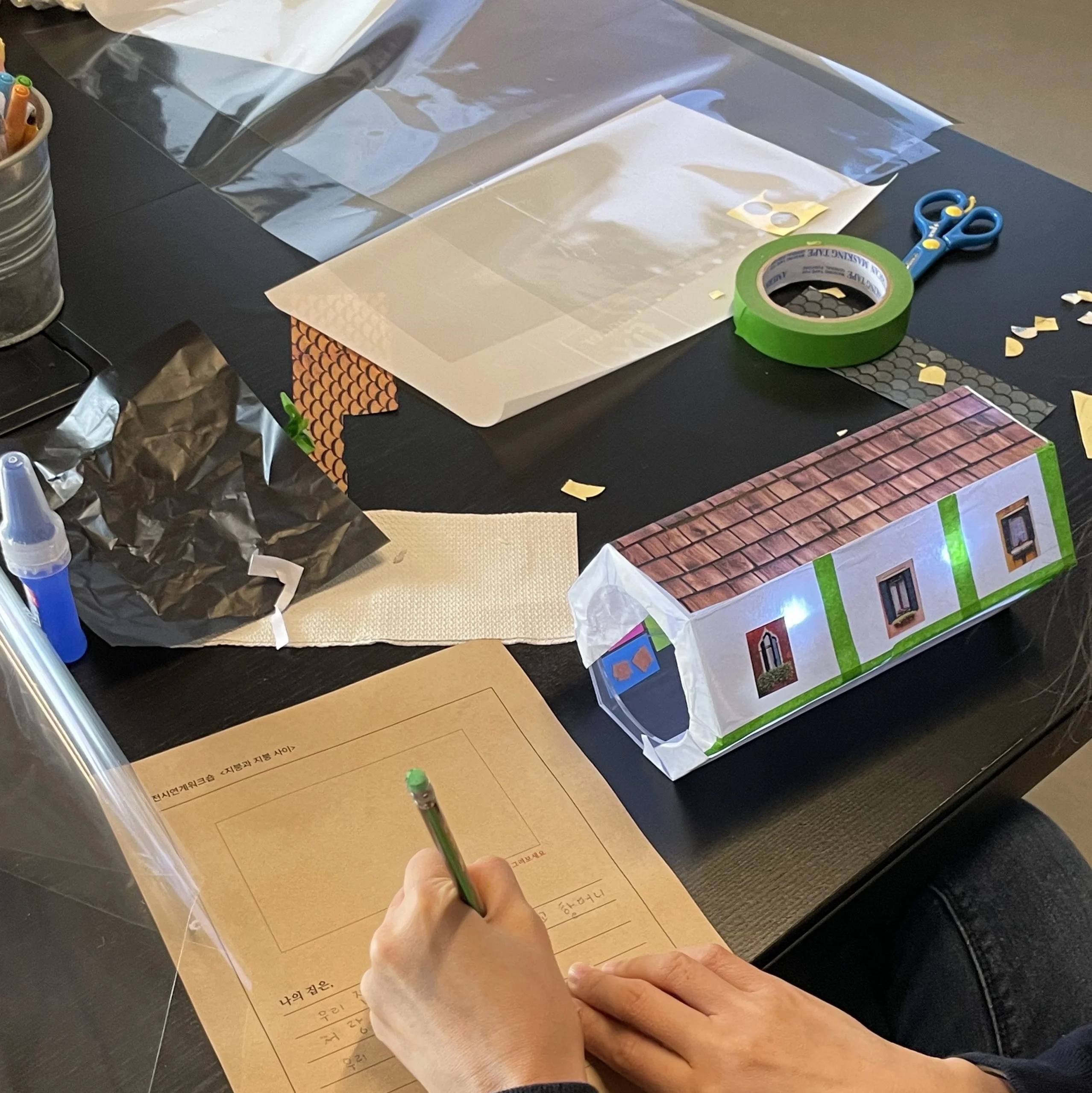 내가 떠올리는 나의 집은 어떤 곳인가요? 누가 함께 있는 기억을 품고있나요? 나에게 집은 어떤 곳인가 질문해 보며 집을 둘러싼 나의 이야기를 벽돌삼아 나의 집을 완성해 봅니다. 이를 통해 가족과 집에 대한 나의 생각을 되돌아 보는 한편, 전시 작품을 새롭게 돌아보는 시간을 가져보고자 합니다.