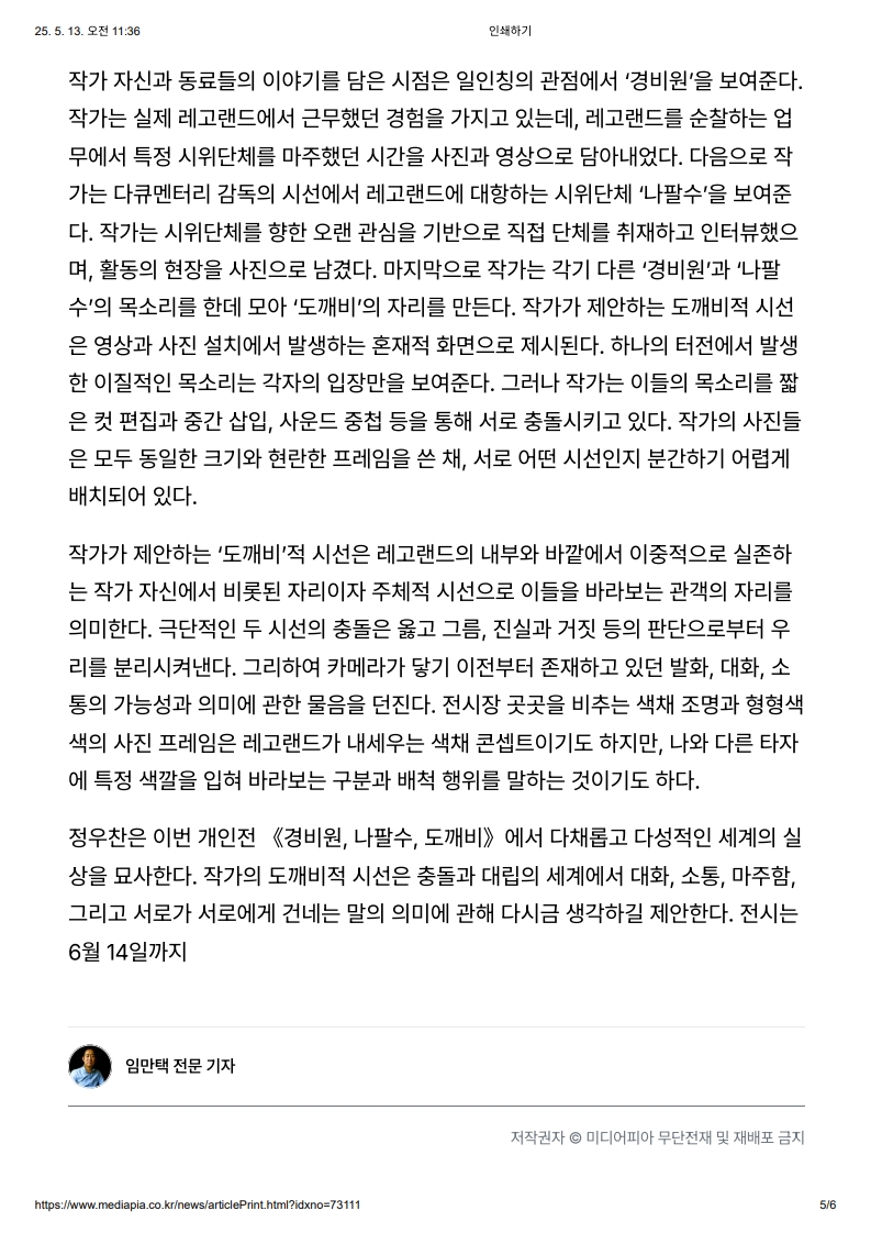 [미디어피아 2025. 5. 10.] 아트센터 예술의 시간, 정우찬 개인전《경비원, 나팔수, 도깨비》개최!