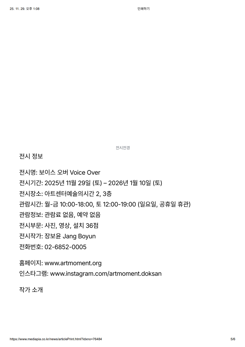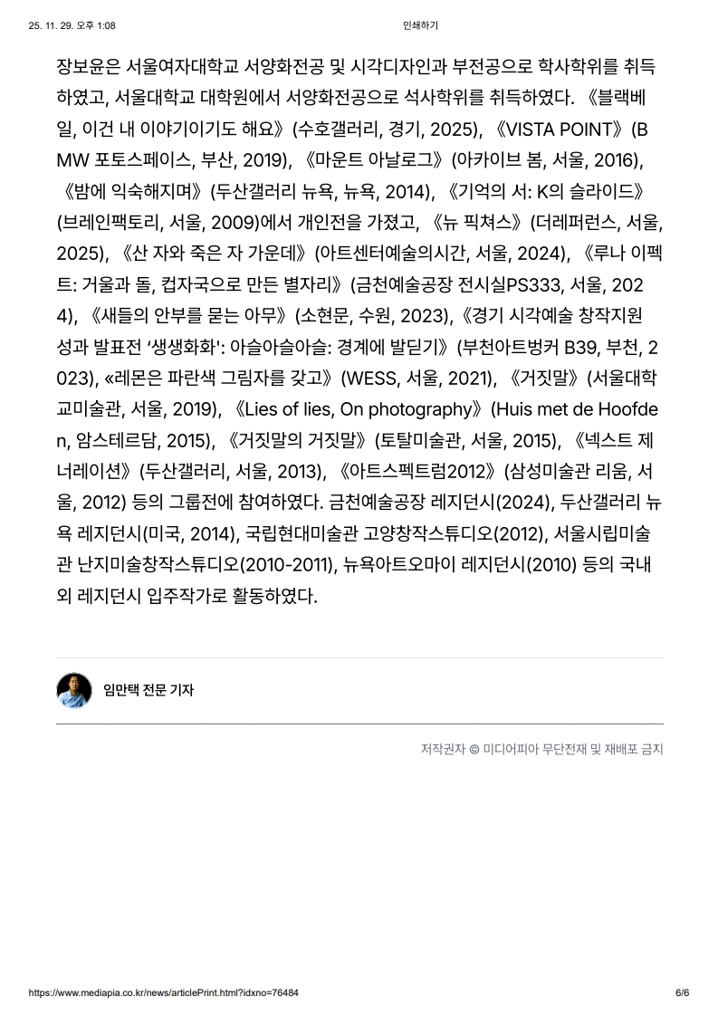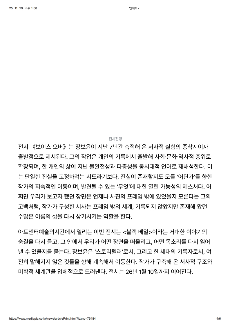 [미디어피아 2025. 11. 26.] 역사와 기억의 흔적을 직조하는 스토리텔러, 아트센터예술의시간 장보윤 개인전 "보이스 오버" 개최!