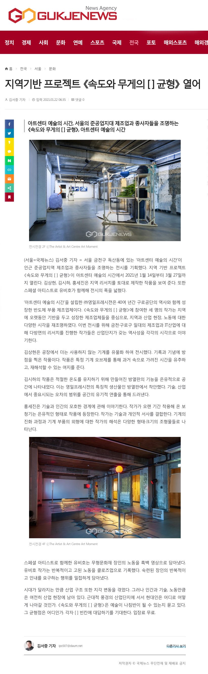 [국제뉴스 2021. 1. 21.] 지역기반 프로젝트 《속도와 무게의 [ ] 균형》 열어