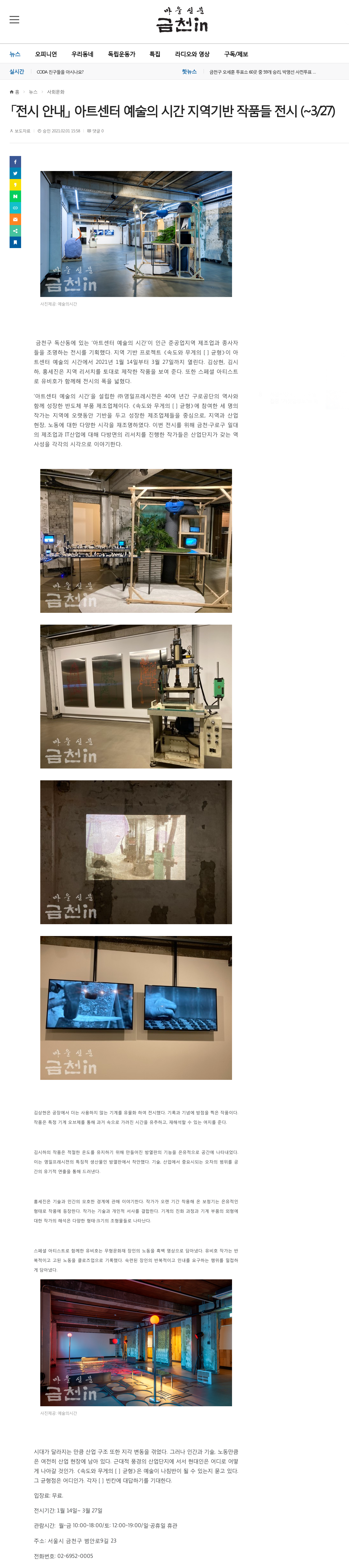 [금천in 2021. 2. 1.] 「전시 안내」 아트센터 예술의 시간 지역기반 작품들 전시 (~3/27)