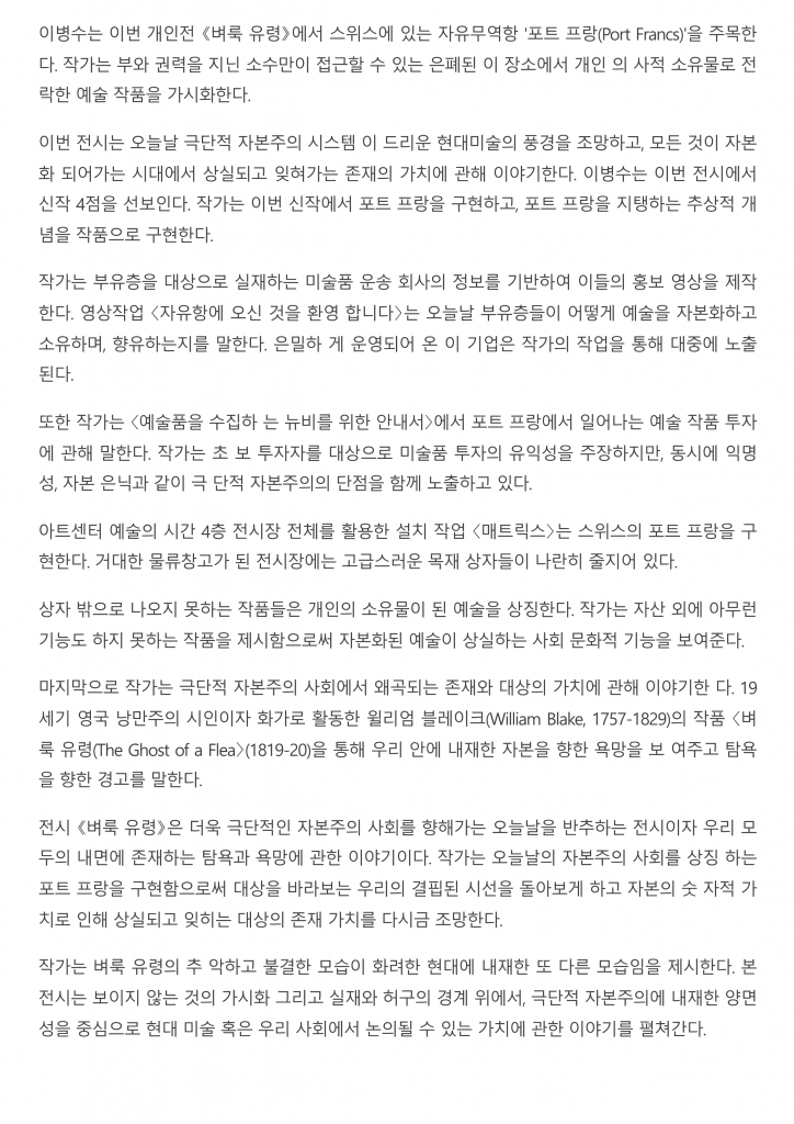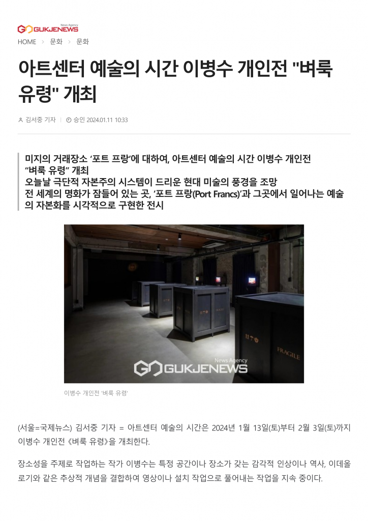 [국제뉴스 2024. 1. 11.] 아트센터 예술의 시간 이병수 개인전 "벼룩 유령" 개최