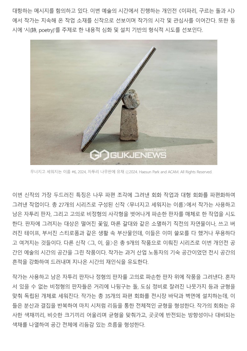 [국제뉴스 2024. 6. 20.] "아티스트 프롤로그 2024" 선정 작가 박해선 개인전 개최