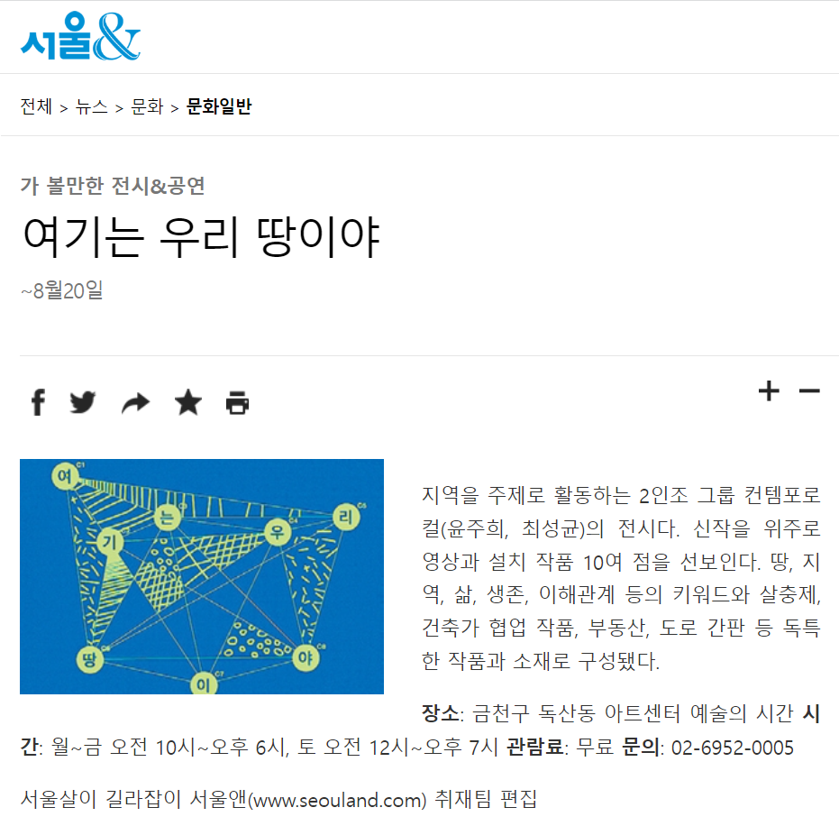 [한겨레 2022. 7. 14.] 가 볼만한 전시&공연 여기는 우리 땅이야